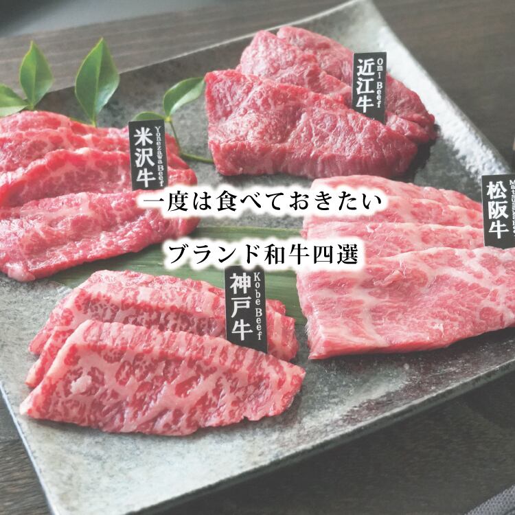 商品内容 神戸牛モモ60g、松阪牛モモ60g、近江牛モモ60g、米沢牛モモ60g、