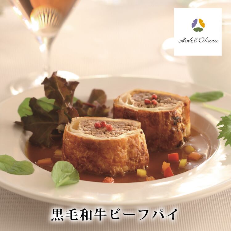 商品特徴 ホテルオークラの黒毛和牛の存在感とおいしさを最大限に味わえるサクサクした食感のビーフパイ。黒毛和牛の旨みを包み込んだパイを上品な甘みと香りのあるマデラ酒を使用したソースで召し上がり下さい。